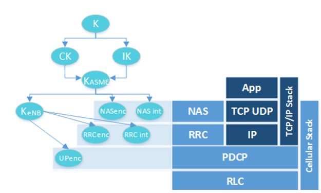 Kriptografik anahtarlar, LTE'nin sisteme entegre edilmiş pek çok güçlü güvenlik özelliğini sunmasına olanak tanır. LTE iletişiminin farklı katmanlarını korumak için kullanılan birçok farklı anahtar mevcuttur. Bu anahtarların tümü gizli ve önceden paylaşılan K anahtarından türetilmektedir. Bu anahtar, UICC'de çalışan USIM'de ve operatörün HSS/AuC'si olmak üzere iki yerde bulunmaktadır. K'nin UICC'ye nasıl tedarik edildiğine bağlı olarak, bir saldırganın, LTE'nin tüm şifreleme işlevlerinden sorumlu olan bu gizli anahtara erişmesi mümkün olacaktır. Bir saldırgan K anahtarına erişirse, hem şebekede bir abone kimliğine, hem de K'nin sağlandığı abone için iletişim şifresini çözme yetisine sahip olacaktır.